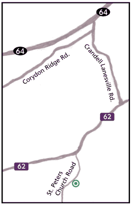 Take I-65 South to 265 West. Travel on 265 West to 64 West. Take I-64 West into southern Indiana to exit 113 (Lanesville). Turn left onto Crandall/Lanesville Road (no sign). When Crandall/Lanesville Road ends into Indiana 62, turn right onto Indiana 62. Go nearly a mile until St. Peters Church Road and turn left. Winey is 3/4 mile down on the left.